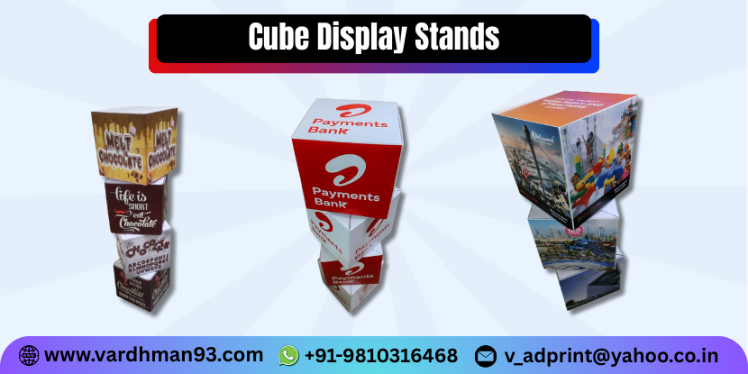 Choose Vardhman Ad Print’s Cube Display Stands to create impactful product displays that drive customer attention and increase sales. Contact us today for customized cube display stand solutions in Delhi and across India.