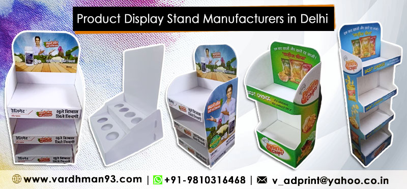 Vardhman Ad Print offers associate degrees in an exciting variety of product display stands per their sizes, shapes, shelves, designs, and colors to allow you to select as per your needs. These product display stand manufacturers' area units are made of all kinds of durable materials like stainless steel, white acrylic, hardware, wire, wood, and plenty of additional. The product display stands keep company with powder coating in surface treatments and might be utterly made-to-order in terms of styles.