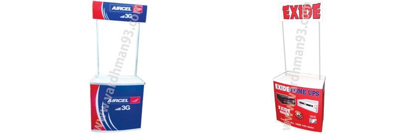 Promo Table is the latest version of Canopies. Now a day’s brands prefer Promo Table instead of Canopy. It takes very less space instead and it looks very digital, new and attractive. And its installation and folding is also very easier and its weight is also very less. Most important feature is its cost is also economical. We have full flash in-house setup for Promo Table.